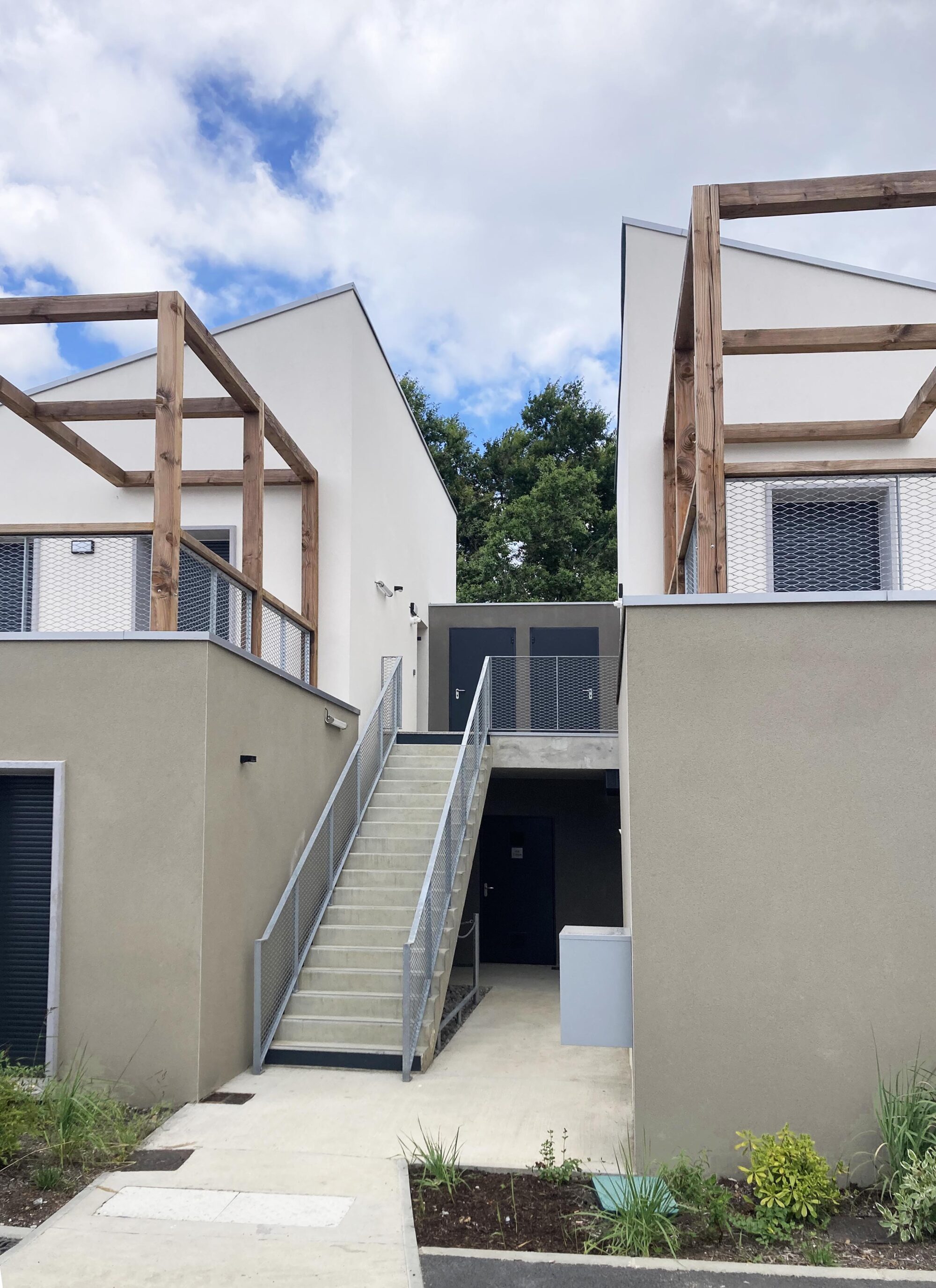 Au nord, un ensemble semi-collectif en R+1 propose des appartements en rez-de-chaussée, et d’autres à l’étage avec terrasse équipée d’une pergola/structure capable pour y fixer ombrières et hamacs.